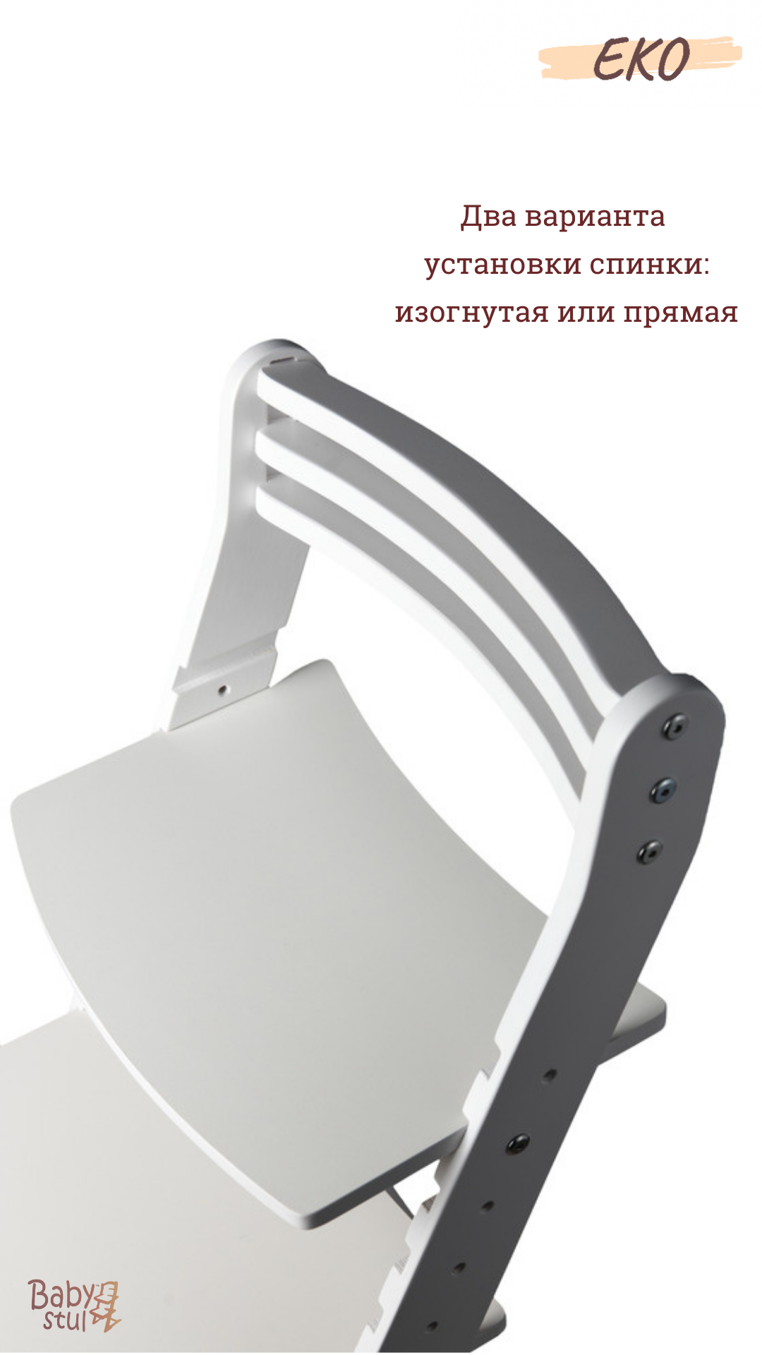 - Детский регулируемый растущий стул торговой марки Babystul модель EKO цвет: белый