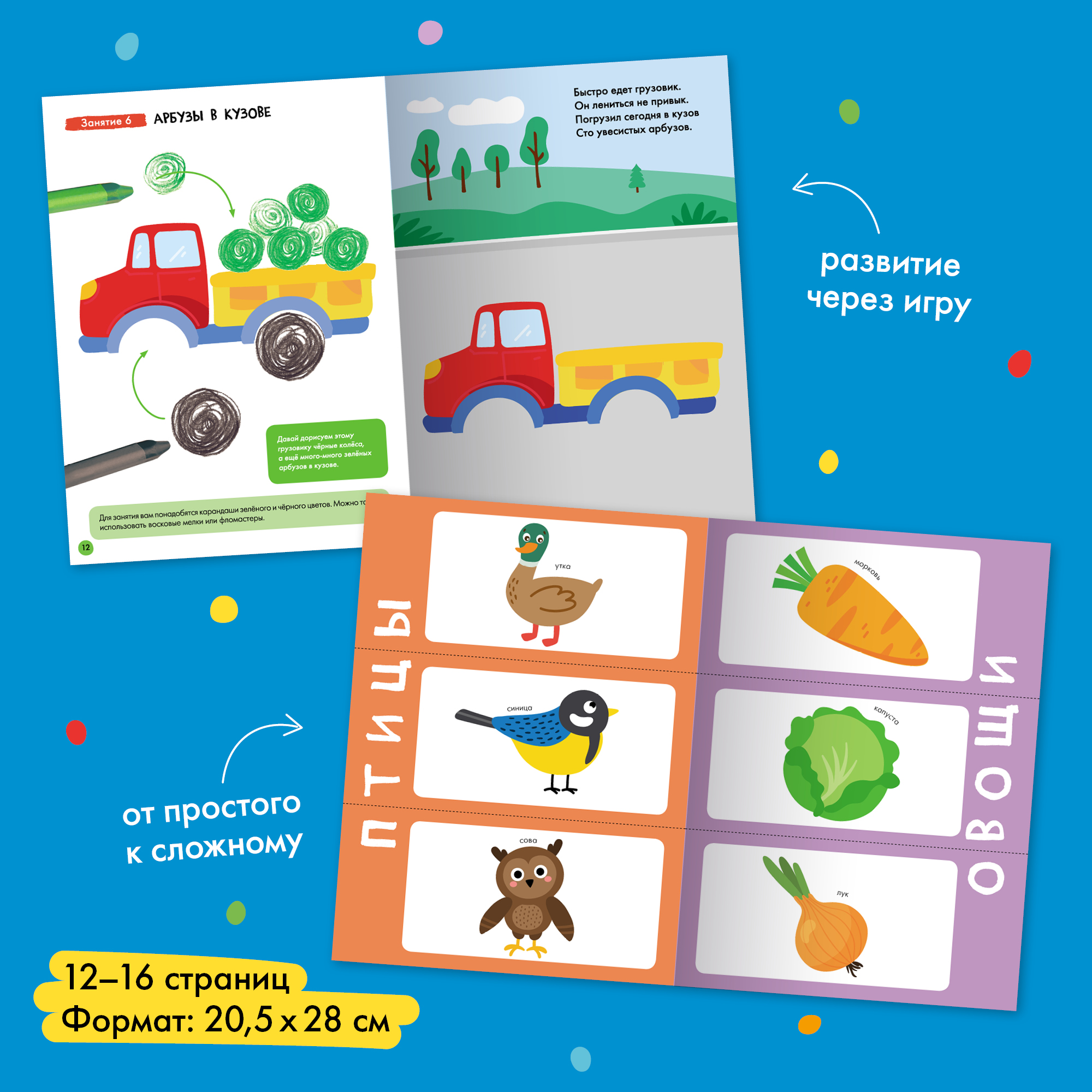 Базовый курс состоит из 6 книг по основным областям развития (речь, счет, мелкая моторика, логика, грамота, мышление) и развивающих игр на закрепление материала (игровое поле, фишки и сценарии игр).