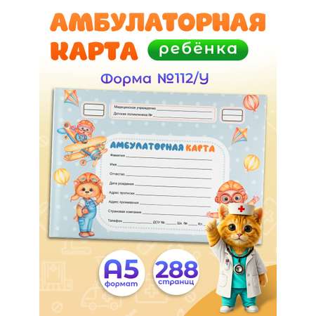 Амбулаторная карта Prof-Press Мишки пилоты А5 144 листа 200х140 мм