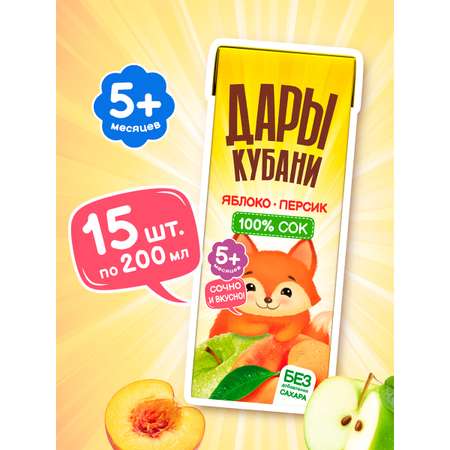 Сок детский Дары Кубани яблочно-персиковый без сахара с мякотью с 5 мес 15 шт по 200 мл