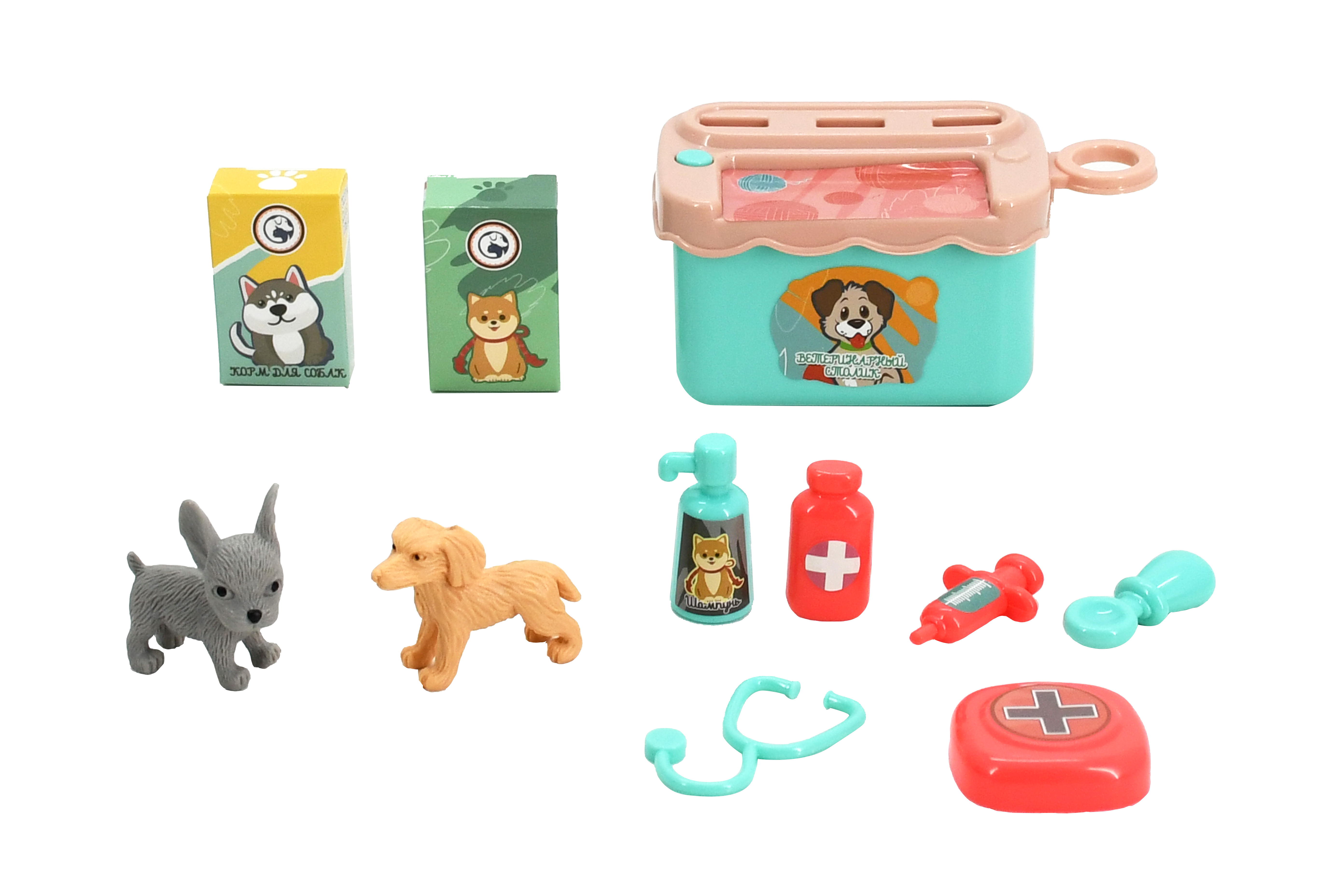 С помощью этого набора дети смогут играть в врачей и спасать больных собачек. Они смогут проводить осмотры, делать инъекции и ухаживать за животными.