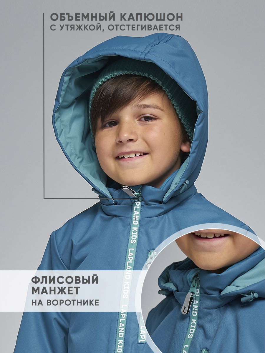 Удобство использования - одна из главных черт этого костюма. Капюшон можно отстегнуть при желании, а на нем есть утяжка для более плотного прилегания. В рукавах и низу брюк имеются ветрозащитные вязаные манжеты, которые надежно сохранят тепло, а также защитят от проникновения влаги. А утяжка по талии куртки позволит достичь идеальной посадки для вашего ребенка.