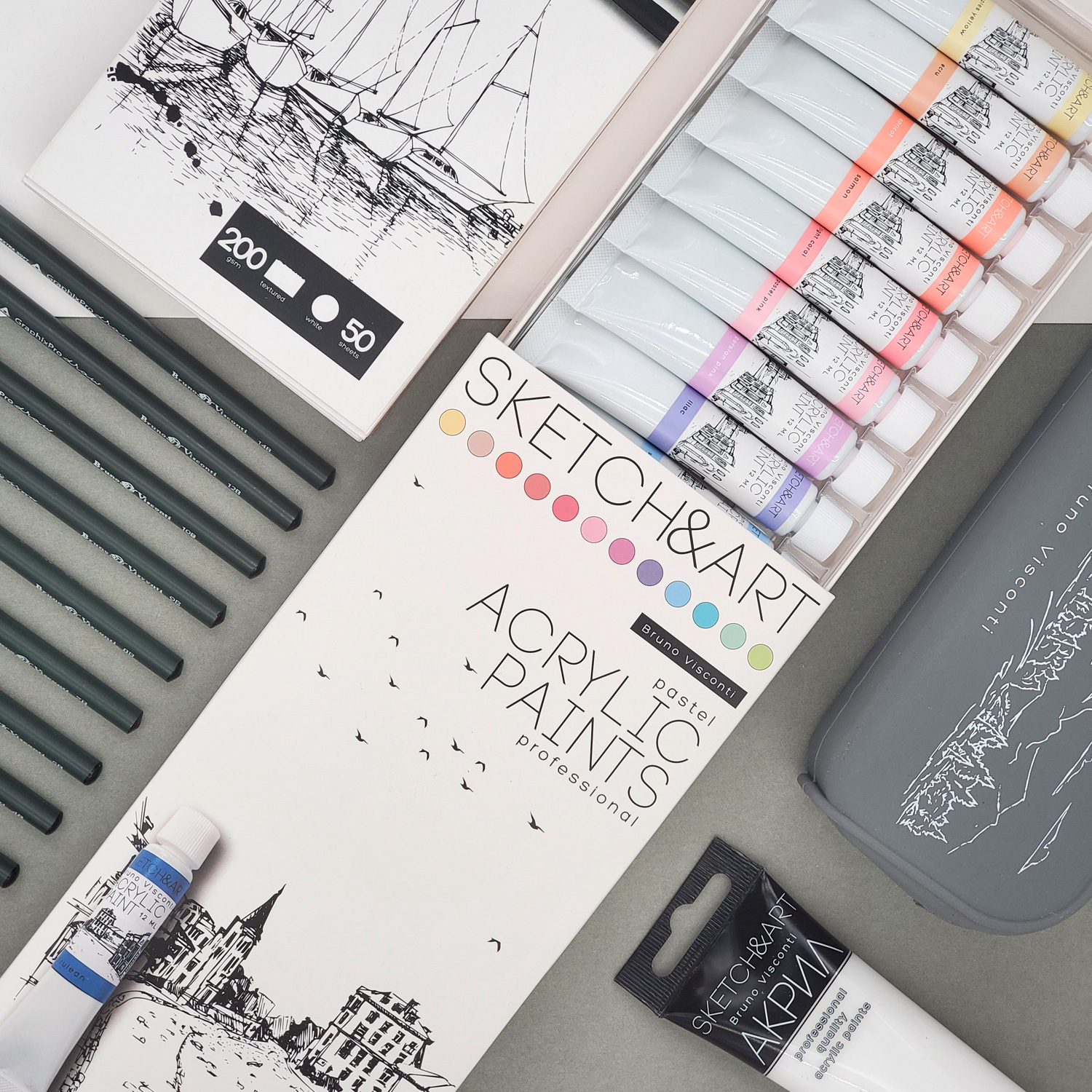 Краски акриловые Bruno Visconti Sketch Art пастельные 12 цветов 12 мл