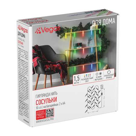 Цена на Электрогирлянда нить Vegas Сосульки 10 разноцветных LED ламп прозрачный провод мерцание 15 м - 484 ₽.