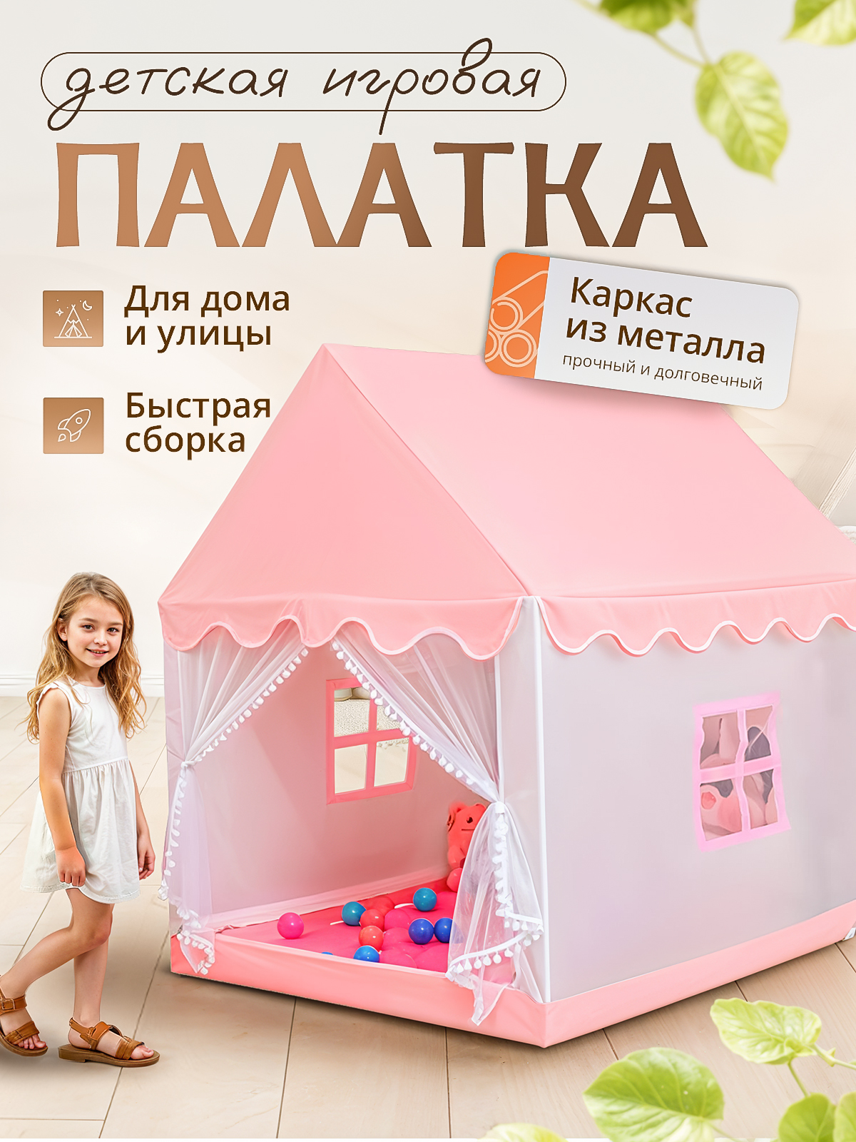 Игрушка для девочек и ворота в волшебный замок для вашей принцессы! Большая детская палатка станет идеальным подарком и незаменимым элементом в игрушечной коллекции. Развлекательный комплекс в виде домика – удивительное место, где мечты оживают, а фантазии получают простор для воплощения. Размеры палатки: 130*120*105см