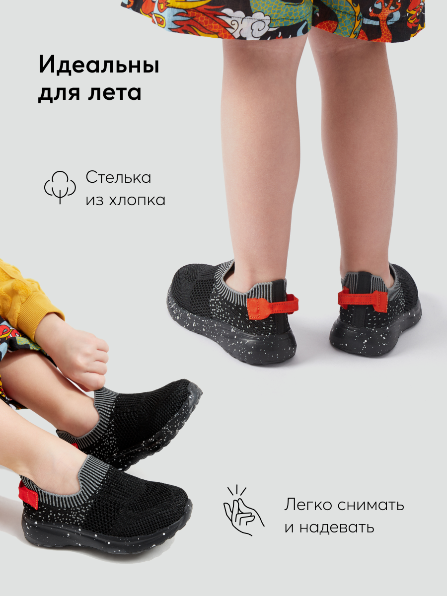 Кроссовки для мальчика и девочки без застёжки удобны для прогулок, занятий физкультурой, подойдут в качестве сменки в детский сад. Быстро надевать и снимать. Благодаря эластичности материала плотно облегают ногу, но не натирают. Изготовлены из сетчатого дышащего текстиля. Анатомически правильная конструкция: пятка слегка приподнята по отношению к носку, жёсткий задник, круглый носок. Благодаря этому стопы малыша развиваются правильно. Лёгкая и удобная обувь на каждый день.