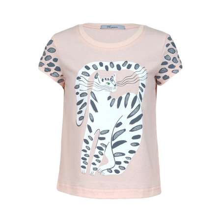 Футболка для девочки прямого силуэта изготовлена из кулирного полотна ( 100% хлопок). Материал футболки легкий, приятный на ощупь, устойчивый к частым стиркам. Изящный принт точно понравится девочкам. Идеальна для прогулок, школы и как повседневный вариант.