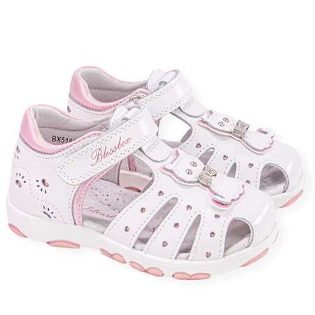 Длины стелек: размер 25 - 15,5 см, р. 26 - 16,5 см, р. 27 - 17 см, р. 28 - 18 см, р. 29 - 19 см, р. 30 - 20 см. Детские нарядные сандалии Blessbox для девочек. Легкая и упругая подошва из ТЭП, обладает хорошей амортизацией при ходьбе. Анатомическая стелька из натуральной кожи способствует правильному формированию детской стопы. Мягкая отделка пяточной зоны предотвратит натирания. Модель имеет регулируемые ремешки, которые позволят легко подстроить босоножки под быстрорастущую детскую стопу. Жесткий задник, максимальная раскрываемость для комфортного надевания, широкая надежная липучка