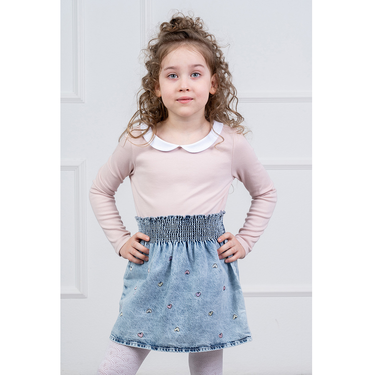 Лонгслив для девочки от бренда 5+ из невероятно мягкого хлопкового трикотажа (интерлок). Модель прямого кроя с длинным рукавом. Основной особенностью изделия является контрастный воротничек "Питер Пэн", который добавляет элегантности образу, а так же находится на пике популярности в этом сезоне. Горловина лонгслива округлой формы, сзади расположена аккуратная застежка на декоративную кнопку-"жемчужину". Лонгслив для девочки выполнен в базовых спокойных тонах, поэтому отлично впишется в базовый гардероб юной модницы в качестве блузки на каждый день.