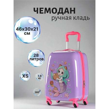 Удобный детский пластиковый чемодан с выдвижной ручкой и необычным дизайном LATS Русалка.