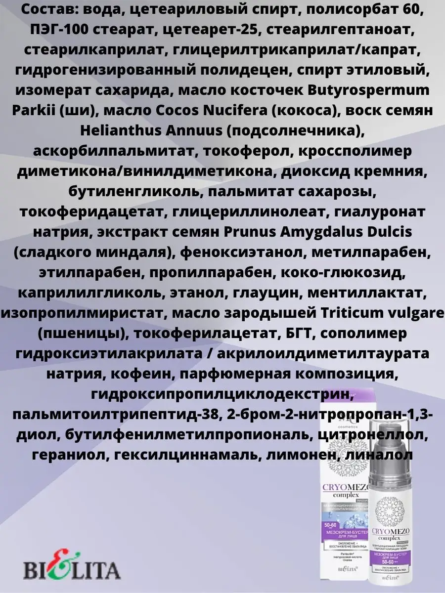Мезокрем бустер для лица BIELITA CRYOMEZOcomplex Омоложение и восстановление овала лица 50+
