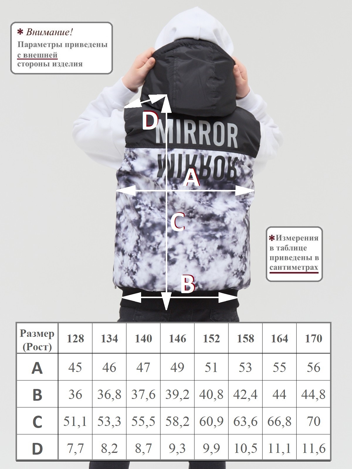 Стильная утепленная жилетка для мальчика-подростка декорирована современным светоотражающим принтом по спинке изделия и на груди. Светоотражающий принт поможет Вашему ребенку быть заметным в темное время суток. Выполнена из принтованной ткани с ветрозащитным водоотталкивающим покрытием, на подкладке из таффеты. В качестве утеплителя служит легкий современный гипоаллергенный 100% полиэстер 200 г/м2, по свойствам и качеству превосходящий устаревший синтепон. Демисезонный детский жилет для мальчика с цельнокроенным несъемным капюшоном, по краю капюшона проложена кулиска со шнуром-резинкой и стопперами для дополнительной защиты от ветра.