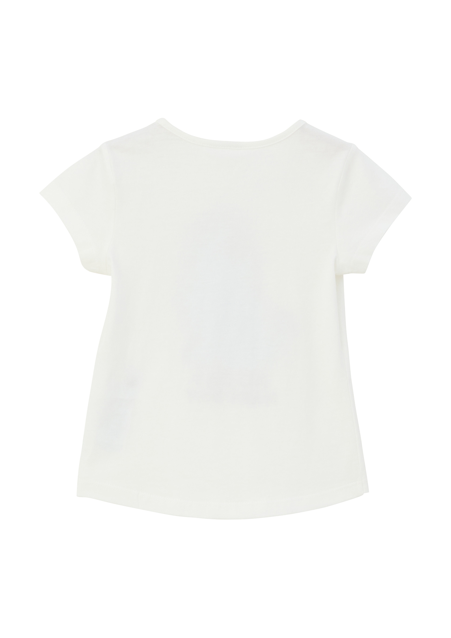 Принт: передний принт, графический принт.Вырез: круглый вырез.Рукав: короткие рукава.Подол: закругленный подол.Стиль: в повседневном образе