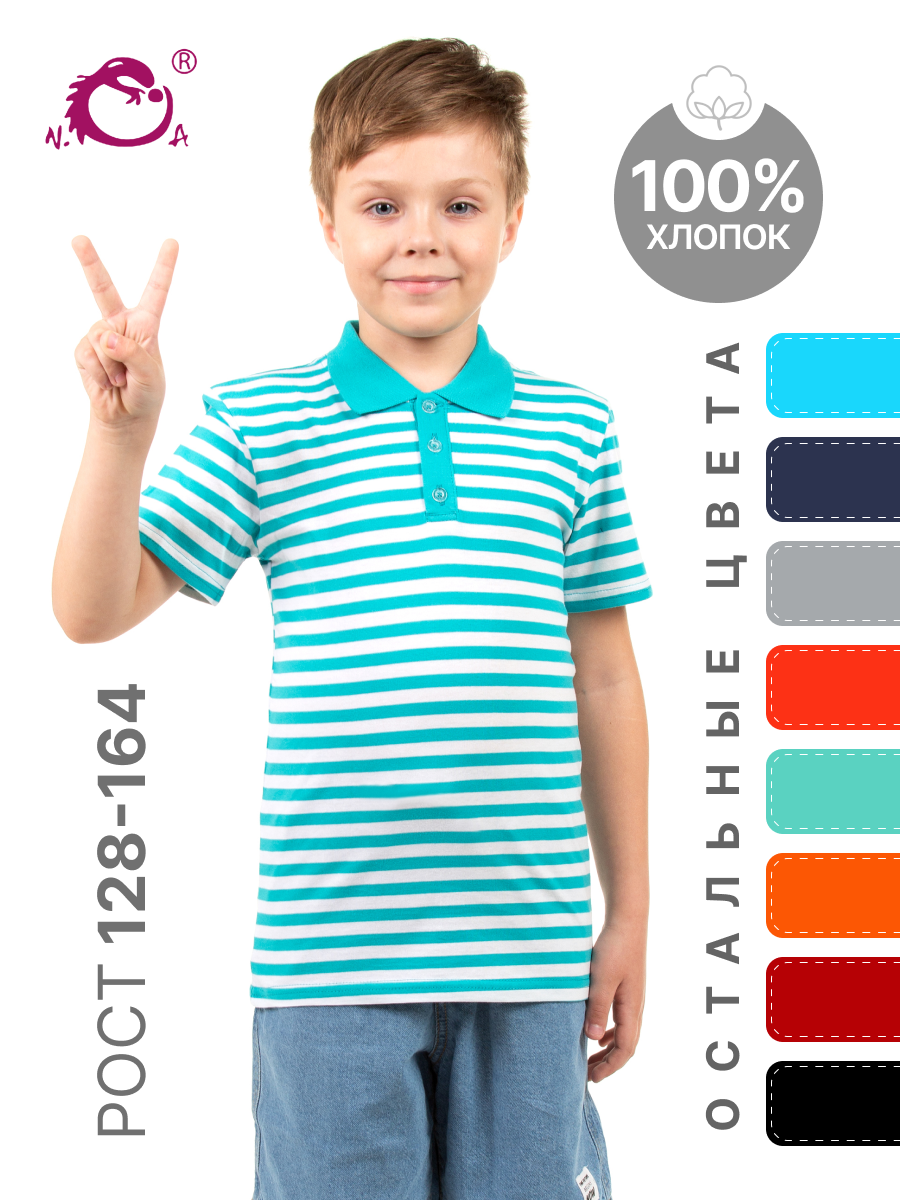 Футболка поло для мальчика с коротким рукавом выполнена из мягкого 100% хлопка КУЛИРНОГО ПОЛОТНА. Ворот с застёжкой на пуговицы.