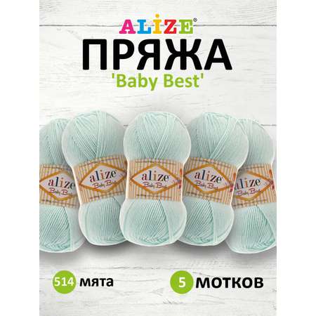 Пряжа для вязания Alize baby best бамбук акрил с эффектом антипиллинг 100 г 240 м 514 мята 5 мотков
