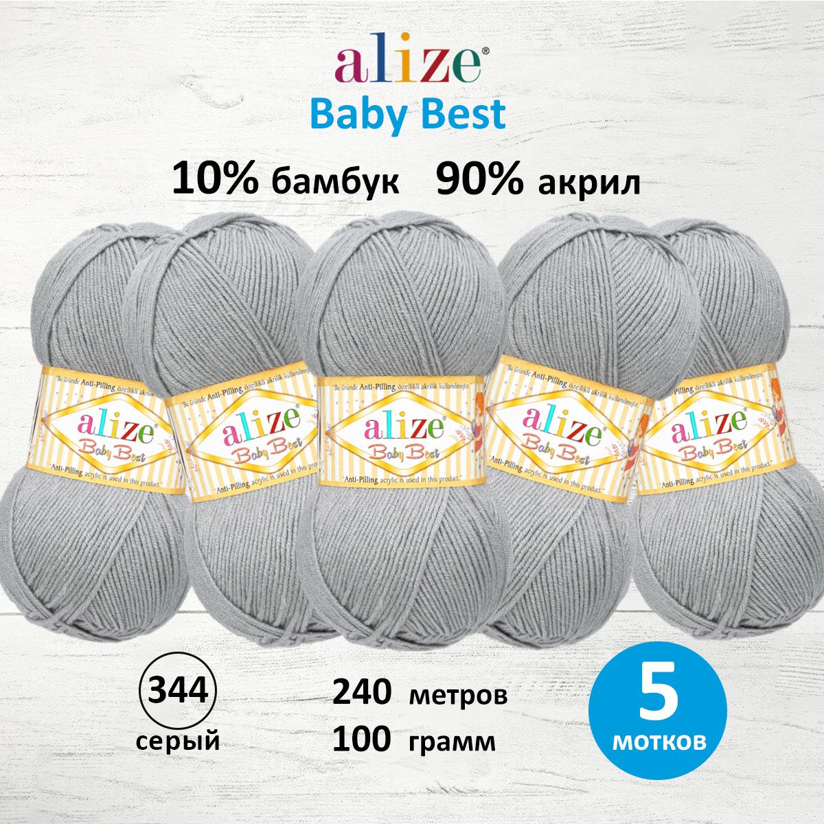 Цена на Пряжа для вязания Alize baby best бамбук акрил с эффектом антипиллинг 100 г 240 м 344 серый 5 мотков - 687 ₽.