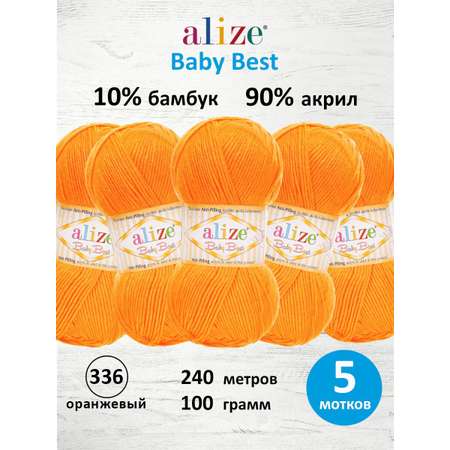 Цена на Пряжа для вязания Alize baby best бамбук акрил с эффектом антипиллинг 100 г 240 м 336 оранжевый 5 мотков - 687 ₽.