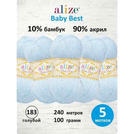 Цена на Пряжа для вязания Alize baby best бамбук акрил с эффектом антипиллинг 100 г 240 м 183 голубой 5 мотков - 687 ₽.