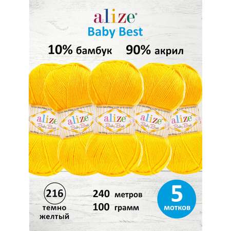 Пряжа для вязания Alize baby best бамбук акрил с эффектом антипиллинг 100 г 240 м 216 темно желтый 5 мотков