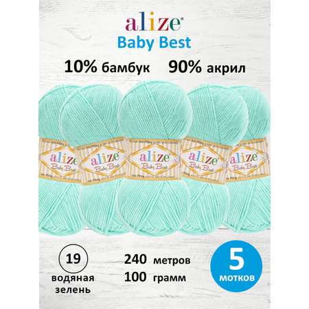 Цена на Пряжа для вязания Alize baby best бамбук акрил с эффектом антипиллинг 100 г 240 м 19 водяная зелень 5 мотков - 687 ₽.