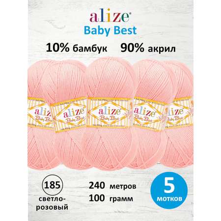 Пряжа для вязания Alize baby best бамбук акрил с эффектом антипиллинг 100 г 240 м 185 светло-розовый 5 мотков