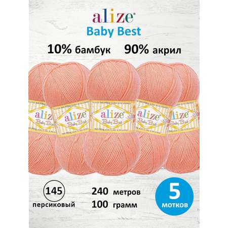 Цена на Пряжа для вязания Alize baby best бамбук акрил с эффектом антипиллинг 100 г 240 м 145 персиковый 5 мотков - 687 ₽.