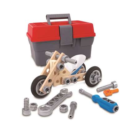 Включает деревянные и пластиковые секции, колеса, гайки, болты, отвертку и гаечный ключ, а также чехол для переноски. Дети могут выбрать из четырех различных моделей мотоциклов для сборки или создать свой собственный фантастический байк. Отвертка и гаечный ключ безопасны и просты в использовании. Колеса Мотоцикла вращаются. Комбинируйте с другими строительными наборами, чтобы добавить создаь свое уникальное творениям.