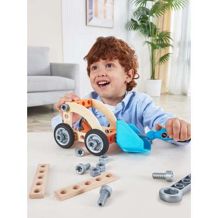 Постройте свой собственный автомобиль или создайте свой собственный фантастический автомобиль. Включает деревянные и пластиковые секции, колеса, гайки, болты, отвертку, гаечный ключ и чехол для переноски.