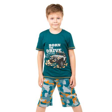 Пижама для мальчика с шортами - декорированы цветным контрастным принтом машинка, изготовлена из качественного кулирного полотна, состоящего на 100% из хлопка мягкая на ощупь, приятная для тела, хорошо пропускает воздух и создает комфортный микроклимат для кожи в любое время года.