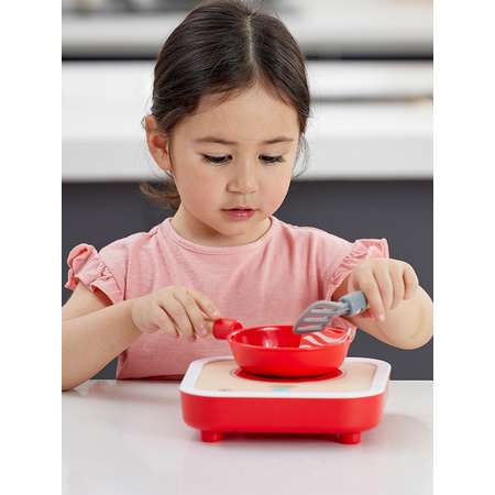 Нажмите кнопку на плите, чтобы включить мигающий свет и шипящие звуковые эффекты. Световые и звуковые эффекты длятся 10 секунд. Отличный способ заинтересовать детей приготовлением собственной еды. Идеально подходит для развития воображения, а также языковых и социальных навыков.