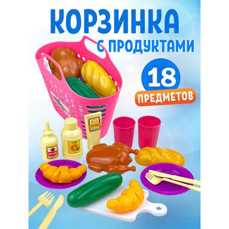 Детский игровой набор продуктов в корзине — это не просто игрушка, а настоящая возможность для малыша погрузиться в мир кулинарии и покупок. Продуктовая корзина с кухонными принадлежностями создана для увлекательных ролевых игр, где ребенок сможет побывать и поваром, и покупателем в магазине. Набор включает в себя игрушечные продукты и посуду: игрушечная курица, батон, круассаны, огурец, бутылочки с кетчупом, горчицей и соком, разделочная доска, посуда и столовые приборы. Большая корзина выполнена в ярких цветах и легко помещает все элементы — дети будут в восторге от своей "кухонной" коллекции и с удовольствием начнут играть в магазин или приготовление любимых блюд.