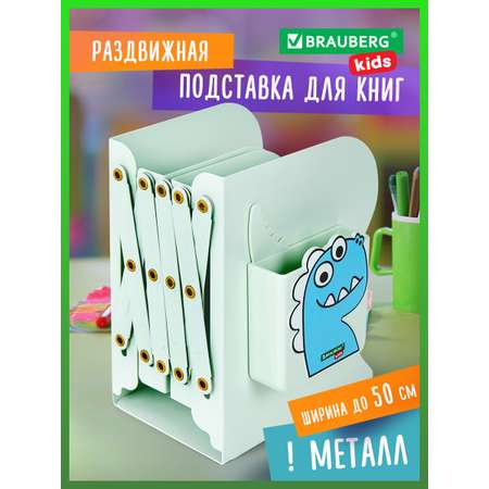 Подставка-держатель для книг и учебников BRAUBERG KIDS "Dino" станет незаменимым аксессуаром для любого школьника. Эта раздвижная подставка для книг выполнена из прочного металла, что гарантирует долговечность и надежность в использовании. Размер 19х10(50)х15 см позволяет легко регулировать пространство, размещая как учебники, так и канцелярские принадлежности. Благодаря оригинальному мятному дизайну, подставка привлекает внимание и вдохновляет на учебу, что делает ее отличным органайзером для учебников.