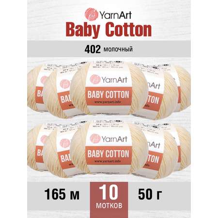 Пряжа для вязания YarnArt Baby Cotton 50гр 165 м хлопок акрил детская 10 мотков 402 молочный