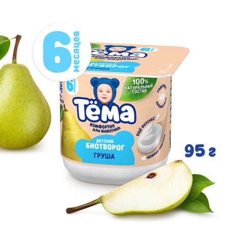 Детский творог «Тёма» с грушей изготовлен из отборного молока и спелых фруктов от проверенных поставщиков.