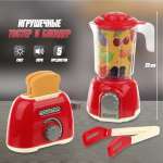 В комплекте игрушка тостер, 2 тоста, игрушка блендер, щипцы.