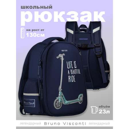 Рюкзак школьный Bruno Visconti облегченная капсула синий с эргономичной спинкой E-SCOOTER