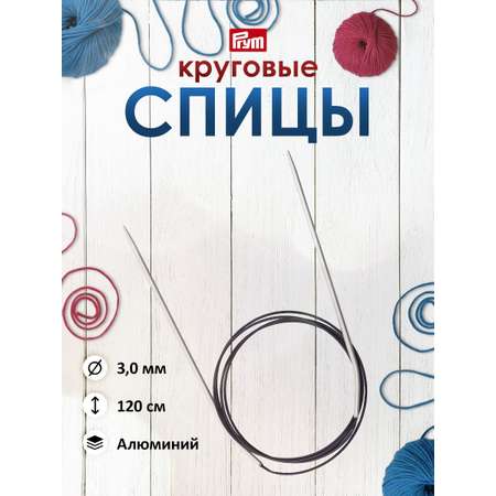 Спицы круговые Prym Гладкие для шерсти хлопка акрила алюминиевые 120 см 3 мм 211238