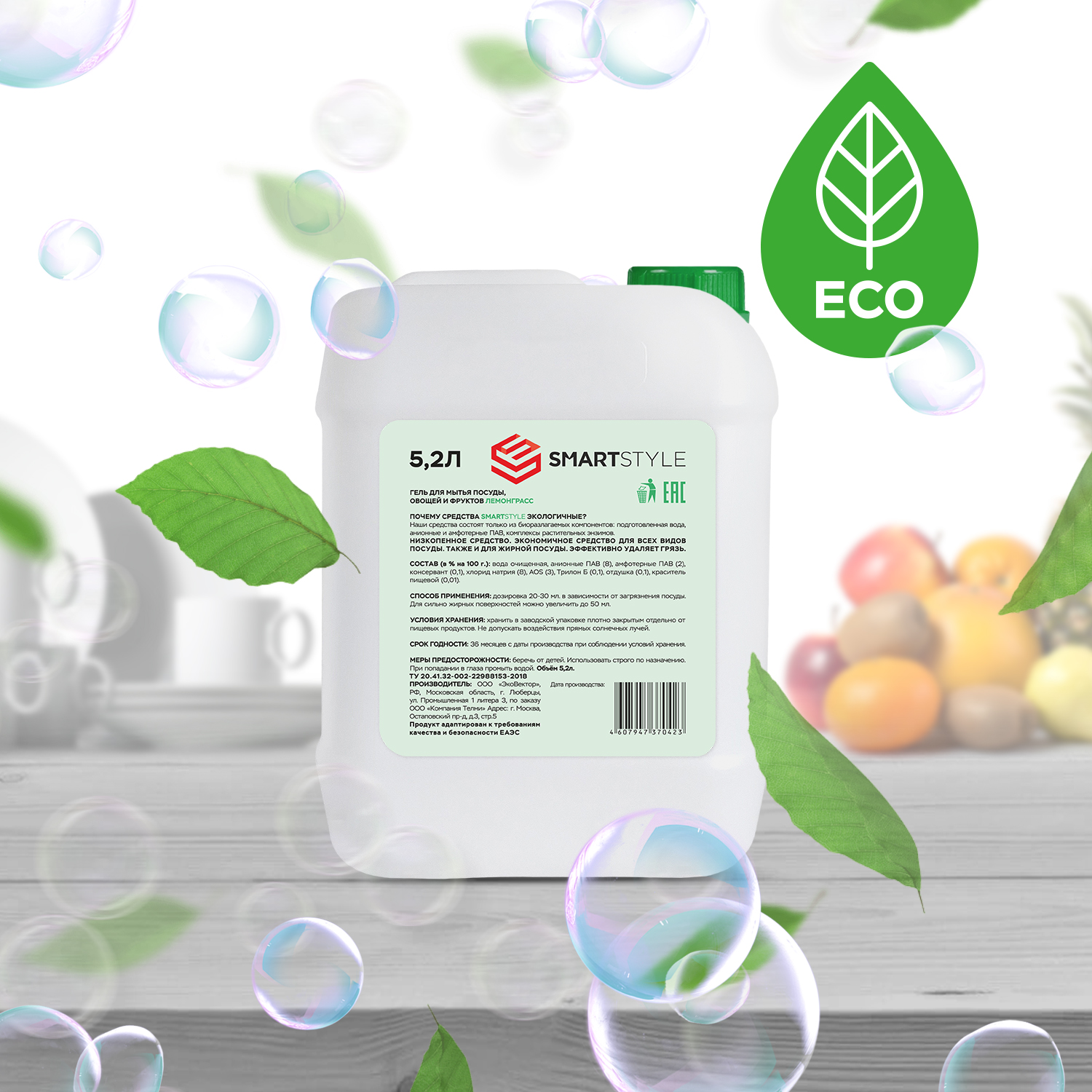 Гель SMARTSTYLE для мытья посуды овощей и фруктов Лемонграсс 5.2 л