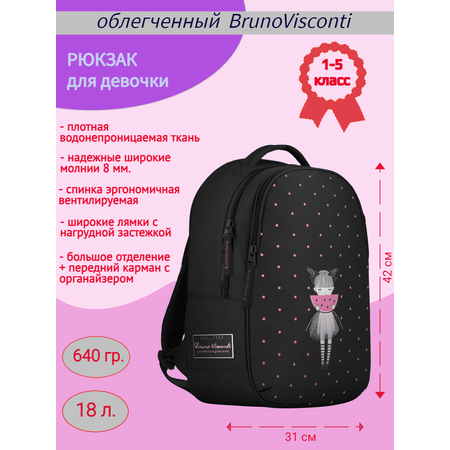 Рюкзак школьный Bruno Visconti классический суперлегкий черный с эргономичной спинкой SWEET GIRL