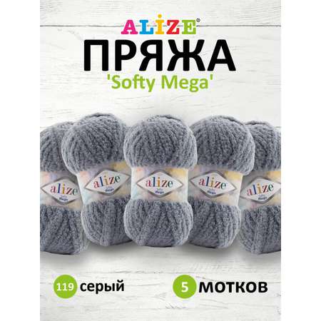 Цена на Пряжа для вязания Alize softy mega 100 гр 70 м микрополиэстер мягкая 119 серый 5 мотков - 688 ₽.
