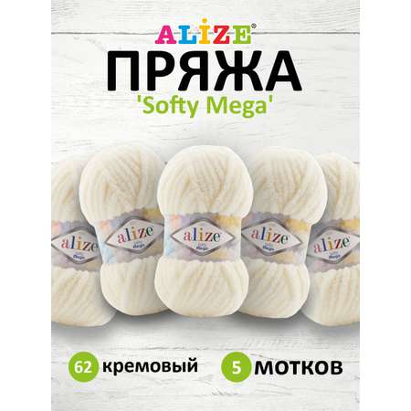 Цена на Пряжа для вязания Alize softy mega 100 гр 70 м микрополиэстер мягкая 62 кремовый 5 мотков - 815 ₽.