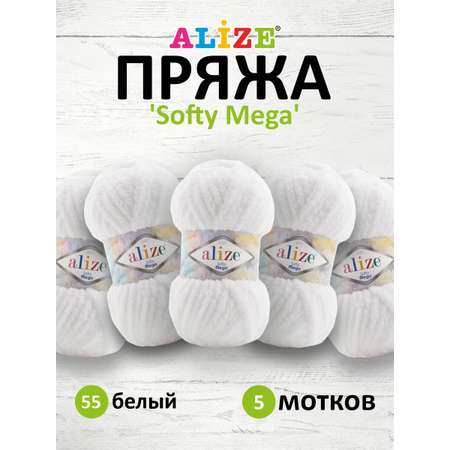 Цена на Пряжа для вязания Alize softy mega 100 гр 70 м микрополиэстер мягкая 55 белый 5 мотков - 815 ₽.