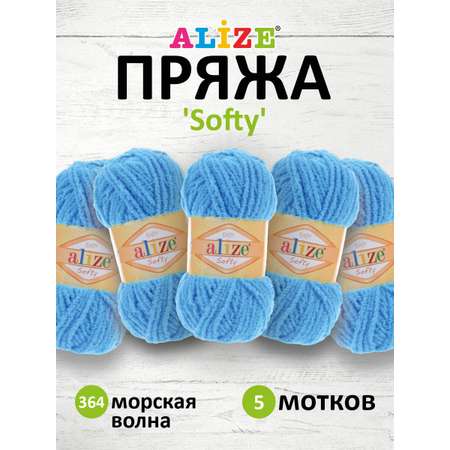Цена на Пряжа для вязания Alize softy 50 гр 115 м микрополиэстер мягкая фантазийная 364 морская волна 5 мотков - 591 ₽.