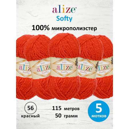 Цена на Пряжа для вязания Alize softy 50 гр 115 м микрополиэстер мягкая фантазийная 56 красный 5 мотков - 429 ₽.