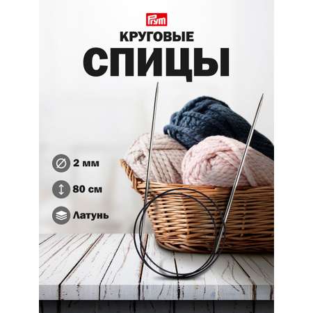 Цена на Спицы круговые Prym из латуни с гибким пластиковым тросиком 80 см 2 мм 212104 - 472 ₽.