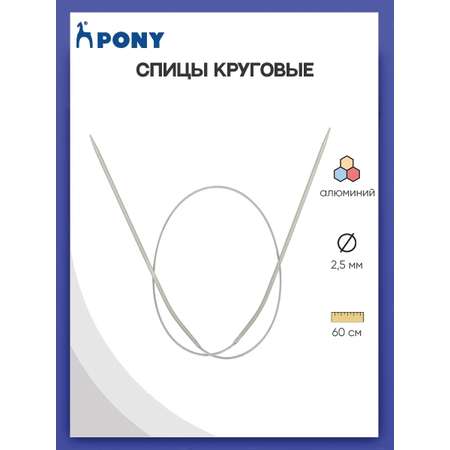 Цена на Спицы круговые Pony алюминиевые гладкие прочные с покрытием с гибким тросиком 2.5 мм 48203 - 258 ₽.