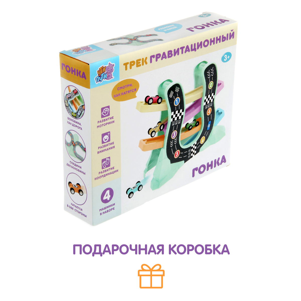 3. Маленькие машинки для мальчика скатываются вниз по горке, могут стоять боком, катаются вперед и назад.