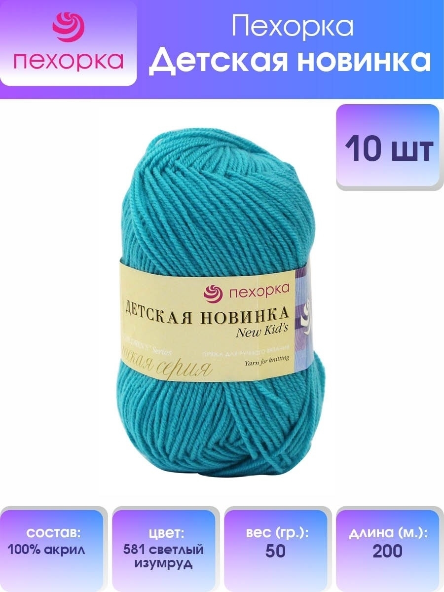 Пряжа для вязания Пехорка детская новинка 50 гр 200 м акрил мягкая для детских вещей 581 светлый изумруд 10 мотков