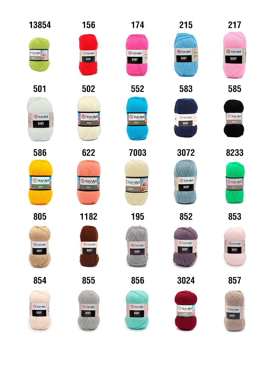 С пряжей 'Baby' можно фантазировать бесконечно, дарить уютные красивые подарки родным и близким, а также любимым домашним питомцам. Мягкая комфортная пряжа 'Baby' отлично подходит для вязания детских вещей и предметов кукольного гардероба, а яркая расцветка добавляет приятных эмоций. Рекомендуемый диаметр крючка и спиц: №3,5.