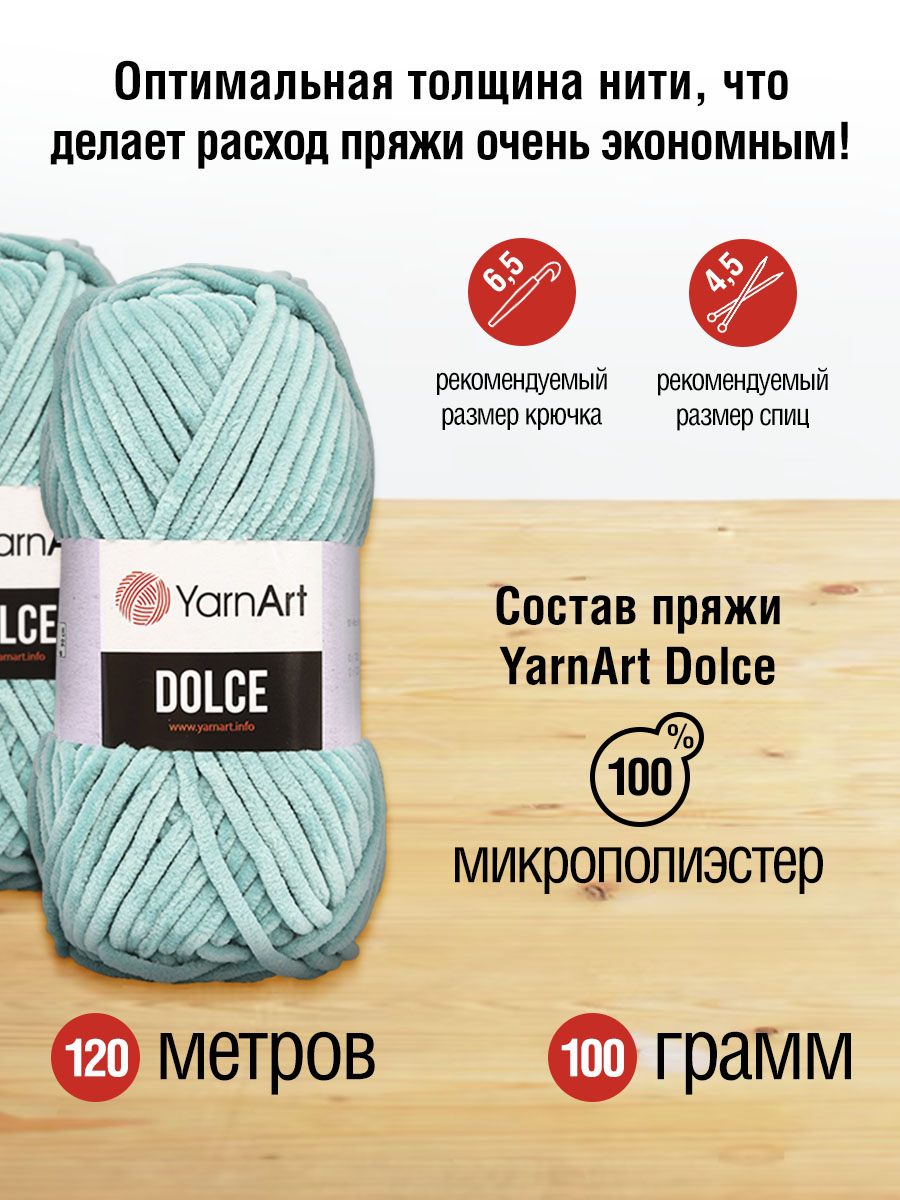 Цена на Пряжа для вязания YarnArt Dolce 100 гр 120 м микрополиэстер пушистая плюшевая 5 мотков 770 пыльно-голубой - 1141 ₽.